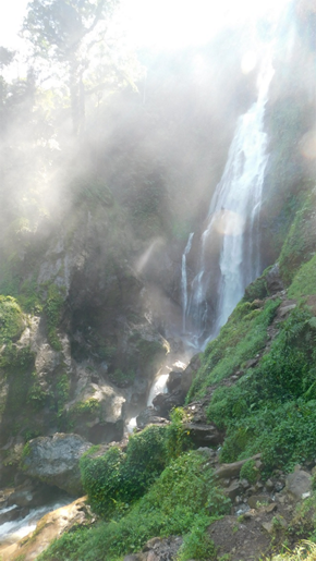 Pemandangan  air terjun sangat indah. Disertai suara deru gemericik air terjun pasti menghilangkan penat dan letih. Sangat nyaman dan damai!