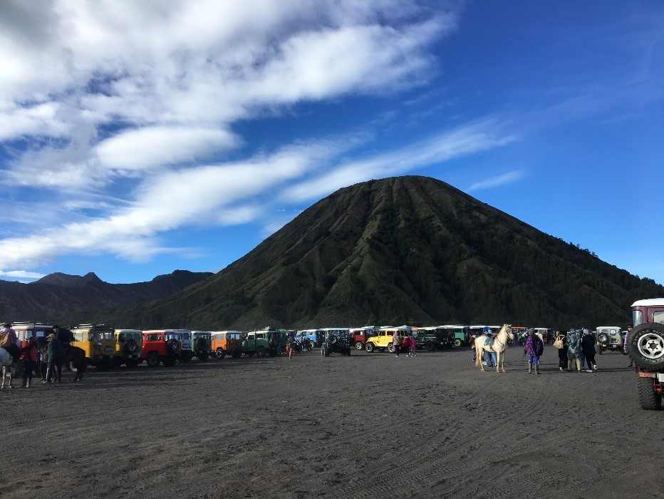 Begitu sampai di kawasan parkiran jeep, pengunjung dapat menemukan jasa untuk menyewa kuda sebagai kendaraan untuk naik ke kawah Bromo karena jarak dari parkiran menuju anak tangga terbilang cukup jauh.