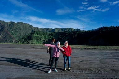 Tempat selanjutnya yang dapat dikunjungi adalah pasir berbisik. Hamparan pasir hitam yang masih terletak di kawasan Bromo ini juga bisa menjadi spot foto terbaik untuk mereka yang senang berfoto-foto.