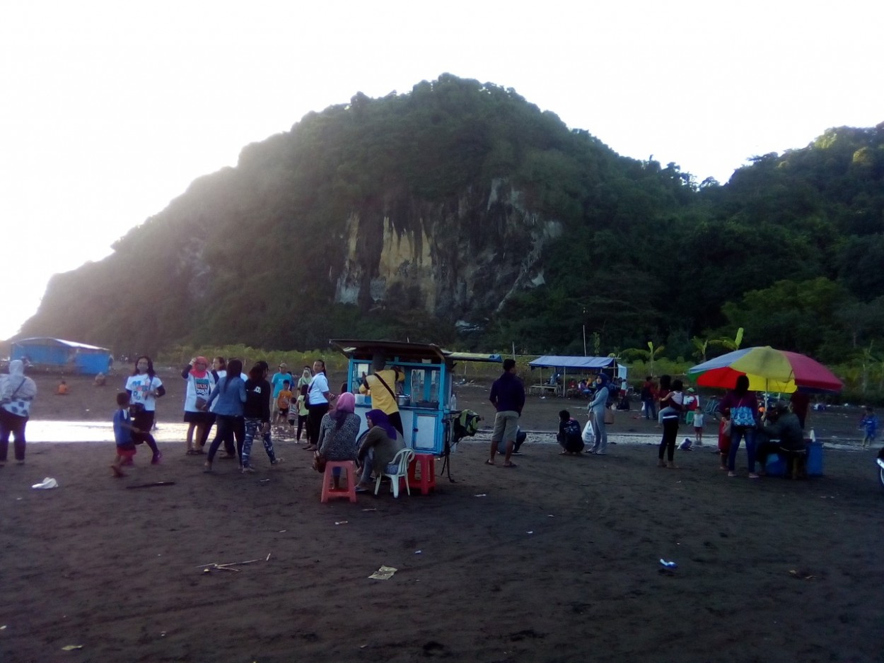 Di pantai Sodong Selatan ini, kamu juga dimanjakan dengan beragam pilihan makanan khas setempat. Namun bukan hanya penjual makanan yang ramai peminat, pedagang mainan, dan rumah balon pun laris manis saat hari libur.