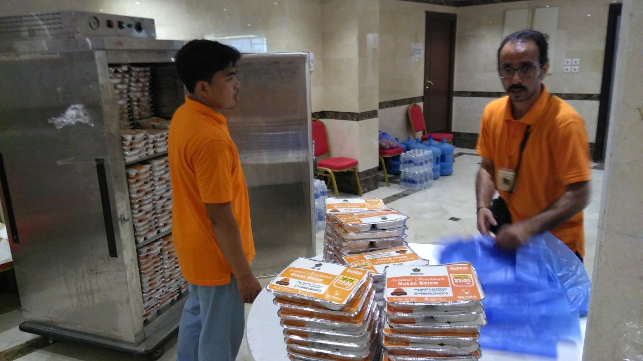 Jika jamaah ingin keluar dari hotel ke Masjid Al Haram, diharapkan makan dulu. Makanan akan tiba di pemondokan sekitar satu jam sebelum masuk waktu shalat.