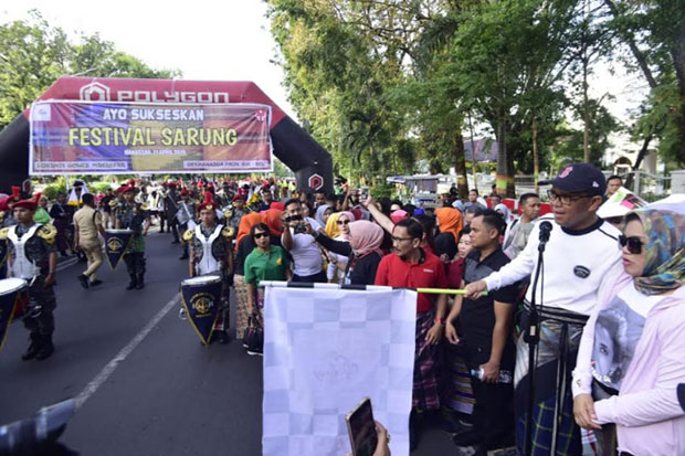 Tim Penggerak PKK Sulsel menggelar Festival Sarung untuk pertama kalinya. Ratusan orang bersarung dengan motif khas Sulsel pun ikut meramaikan acara ini.