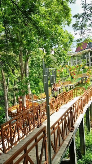 Tempat ini disuguhkan pepohonan-pepohonan yang rimbun bagaikan musim sakura di Korea namun bewarna hijau di padu dengan rumput- rumput yang ditata sedemikian rupa yang sedap dipandang mata, bervariasi bunga di tanam di setiap sudut tempat agar lebih memberi warna.