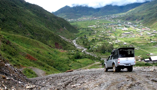 Selain itu, bisa juga menggunakan jalur darat untuk menuju Distrik Mulia dengan jarak tempuh selama 16 jam. Tantangannya, perjalanan jalur darat ini harus melewati jalan berupa tanah dan bebatuan. Bahkan, melewati pegunungan yang berbukit dengan jurang curam di sisi kiri dan kanan.