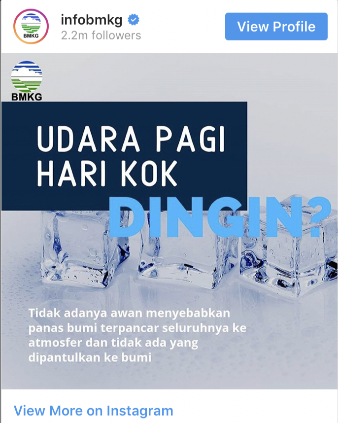 Badan Meteorologi, Klimatologi, dan Geofisika (BMKG) dalam postingan di Instagram resminya menjelaskan hawa dingin dalam beberapa hari belakangan. Katanya, seperti dilihat tfanews.com, Kamis (8/8/2019), hawa panas yang panjang akan kita rasakan sebelum merasakan dingin di malam hari.