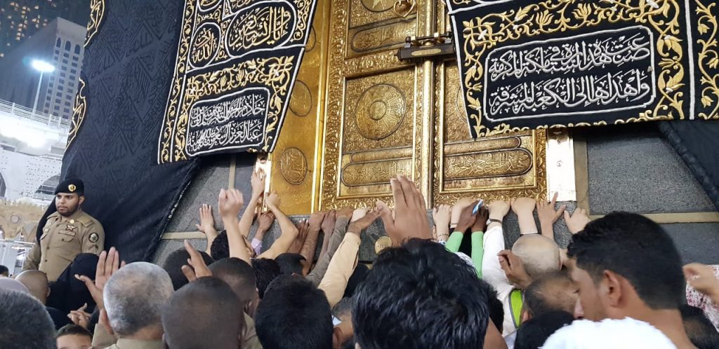 Dalam proses tawaf, tampak ada banyak jemaah yang bergerak mengelilingi Ka’bah sembari mendekat ke baitullah. Begitu sudah cukup dekat, dan peluang mendukung, jemaah tersebut bisa menyentuh dinding Kakbah. Jangan salah sangka, meskipun tengah malam, menyentuh dinding Kakbah pun begitu sulit karena banyaknya jemaah yang hendak melakukan hal yang sama.
