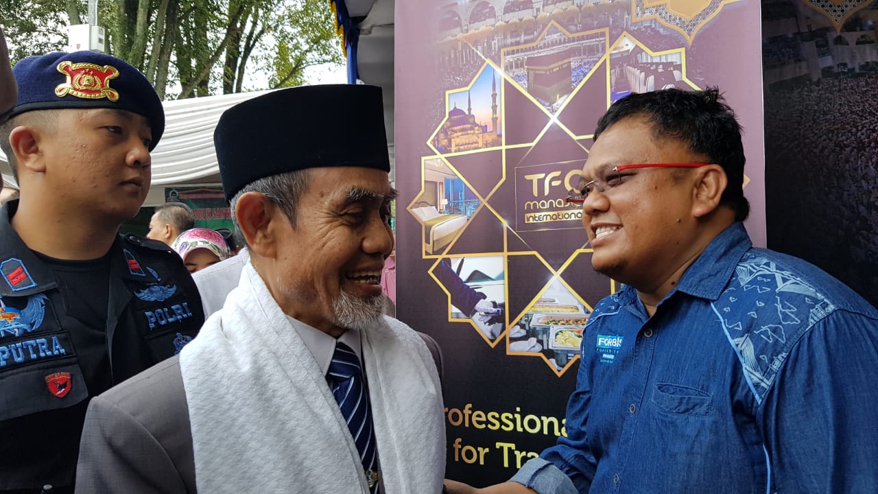 CEO TFA Manasek Nordin Hidayat turun langsung menjaga stan untuk menerangkan traveling, umrah, dan haji, kepada siapa saja yang datang ke sana. Mengenakan seragam Forum Bisnis (Forbis), Nordin menyapa para tamu dengan senyum ramahnya.
