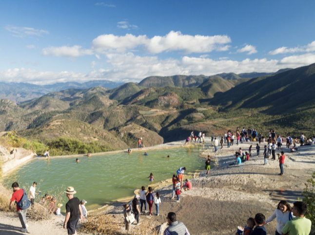 Hierve el Agua memiliki beberapa kolam di atasnya yang bisa digunakan wisatawan untuk berenang. Ada juga kolam buatan yang sangat dekat dengan pinggir tebing. Kandungan mineral yang tinggi menyebabkan airnya memiliki efek penyembuh.