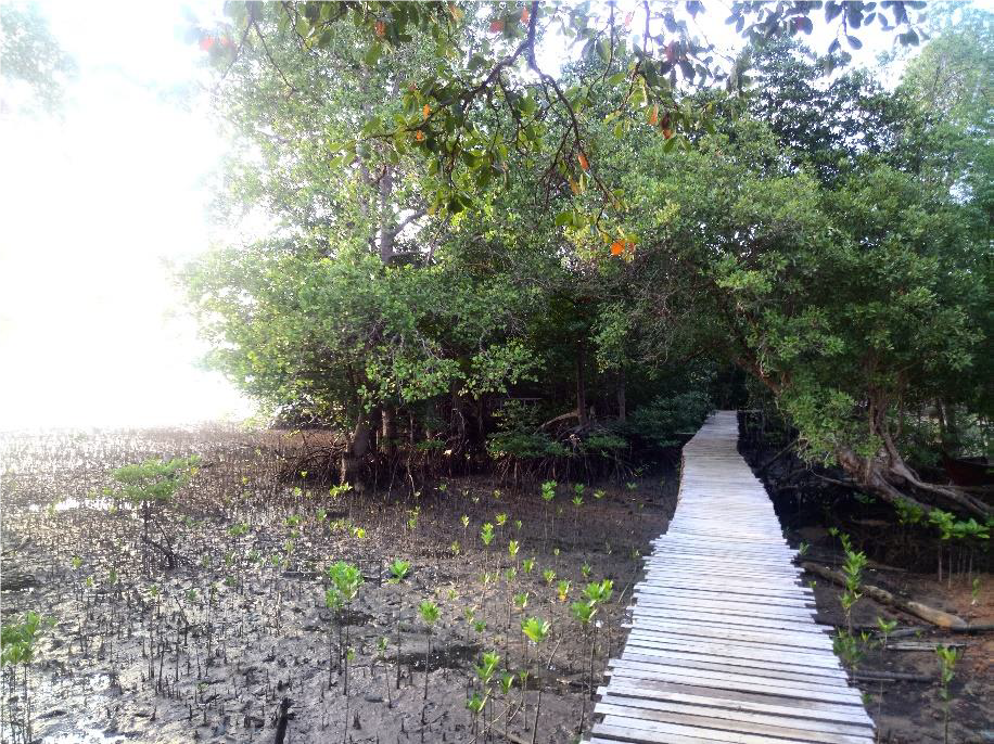 Cocok bagi anak-anak hits yang ingin mengambil gambar bernuansa alam. Disepanjang hutan bakau dibuatkan jalan dari kayu sehingga wisatawan berjalan menyusuri hutan bakau dan disuguhkan langsung nuansa alam.