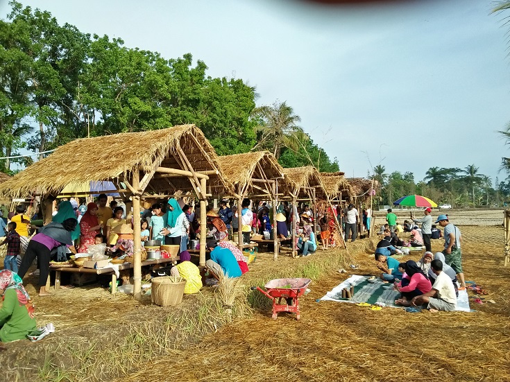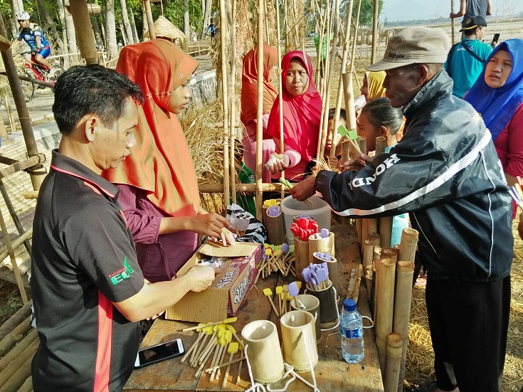 “Hari ini tambah meriah karena ada puncak peringatan hari ulang tahun Pasar Inis yang pertama, sebenarnya ulang tahunnya tanggal 8 April tapi sekaligus dibarengkan dengan Hari Kartini 21 April. Untuk itu diadakan juga lomba-lomba seperti fashion show, 3 on 3 rinjing sawah, estafet wedang telang tanpa Selang, melukis Inis, tangkap bebek di sawah, dan adi busono wong-wongan sawah,” lanjutnya.